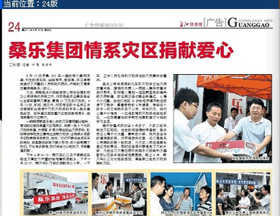 長江信息報:桑樂集團情系災區(qū)捐獻愛心