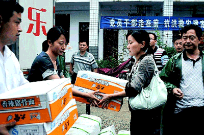 為此,桑樂湖南基地負責人耿剛及相關領導班立杰、岳陽市經(jīng)銷商劉芹每連夜召開緊急會議全面部署賑災事宜,募捐10萬元救災物資。6月13日,耿剛、班立杰、劉芹每率數(shù)十名員工與記者隨數(shù)臺裝滿十萬救災物資的專車從湖南基地出發(fā),驅(qū)車直達岳陽重災區(qū)岳陽縣相思鄉(xiāng)、臨湘縣詹橋災區(qū)賑災。