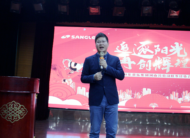 4月16日,桑樂集團河南省旺季營銷會議在濟南黃河大酒店舉行,大會由集團市場部長國升主持,桑樂集團領(lǐng)導層、河南分公司辦事處銷售人員、河南省縣、鄉(xiāng)核心經(jīng)銷商230人齊聚一堂,備戰(zhàn)河南旺季市場,打響了河南分公司旺季促銷攻勢。
