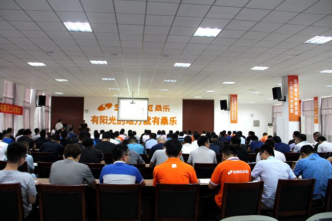 培訓會議上,桑樂集團光熱工程、光伏、空氣能、凈水、廚衛(wèi)等領(lǐng)域的專業(yè)技術(shù)人員于洪文、孫向東、丁海學、梁慶彬、唐強分別進行了培訓分享。他們從空氣能產(chǎn)品知識、光伏電站工作原理、運營維護,煙機灶具、電熱水器構(gòu)造安裝知識,凈水機維護保養(yǎng)、工程招投標基礎(chǔ)等多個方面進行了詳細的講解,讓大家深刻領(lǐng)會到產(chǎn)品使用、客戶購買、售后安裝過程中涉及到的專業(yè)技術(shù)。所有受訓人員對集團產(chǎn)品加強了認知、認同,對客戶消費目標有了更進一步的了解、定位。